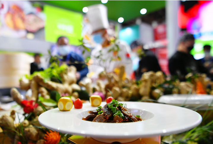 在2021中國預制菜產(chǎn)業(yè)大會(huì )暨展會(huì )現場(chǎng),參展商展示的菜品。新華社記者 魏培全 攝于2021年12月2日