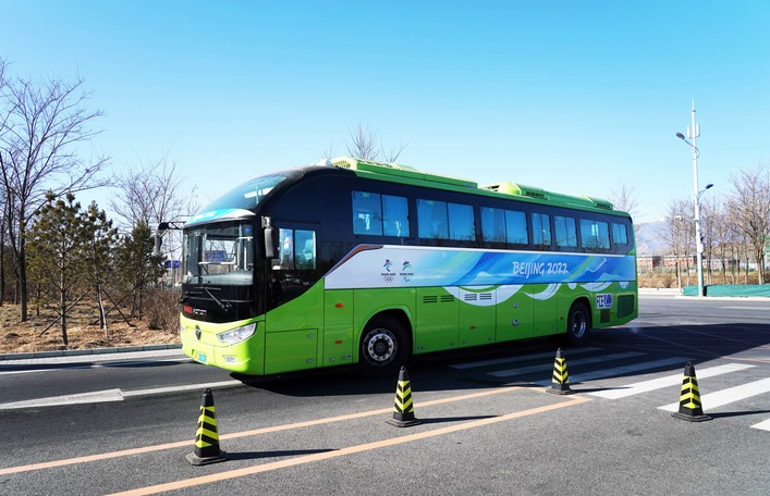 1月17日,氫燃料新能源車(chē)準備駛入北京2022年冬奧會(huì )和冬殘奧會(huì )延慶停保中心場(chǎng)站。新華社記者 任超 攝