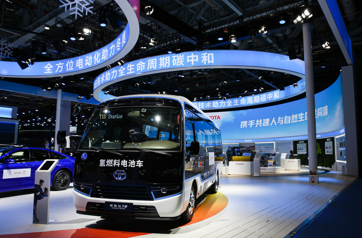 在第四屆進(jìn)博會(huì )汽車(chē)展區拍攝的氫燃料電池車(chē)。 新華社發(fā)(郝昭 攝)