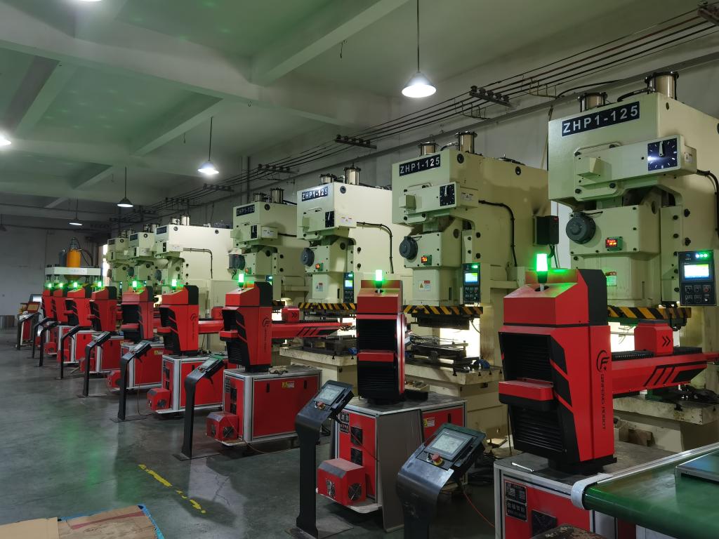 2022年10月19日,在慈溪市玉龍電器有限公司沖壓車(chē)間內,機械設備正在生產(chǎn)取暖器前板。新華社記者 顧小立 攝