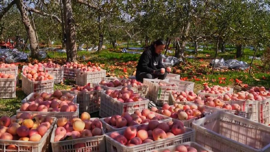 金秋時(shí)節,陜西省白水縣55萬(wàn)畝蘋(píng)果迎豐收。色澤紅潤、碩大飽滿(mǎn)的蘋(píng)果掛滿(mǎn)枝頭,田間彌漫著(zhù)沁人心脾的果香。在白水縣林皋鎮蘋(píng)果產(chǎn)業(yè)示范基地,果農們正在采摘、分揀、包裝,沉甸甸的蘋(píng)果壓彎了樹(shù)枝,滿(mǎn)載著(zhù)果農增收的希望。