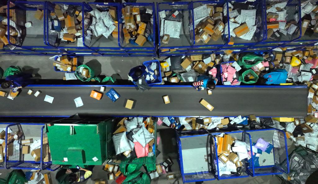 “雙11”過(guò)后,全國各地的物流企業(yè)迎來(lái)快遞物流高峰。新華社發(fā)(曹正平 攝)