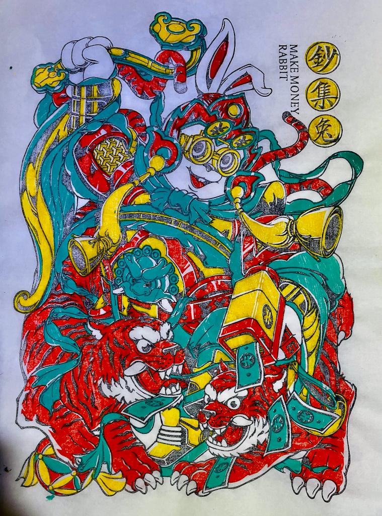這是上色后的“鈔集兔”年畫(huà)。(受訪(fǎng)者供圖)
