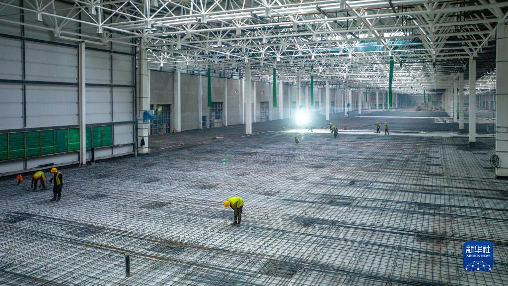 工人在奧迪一汽新能源項目建設現場(chǎng)施工(1月31日攝,無(wú)人機照片)。新華社發(fā) (王勐攝)