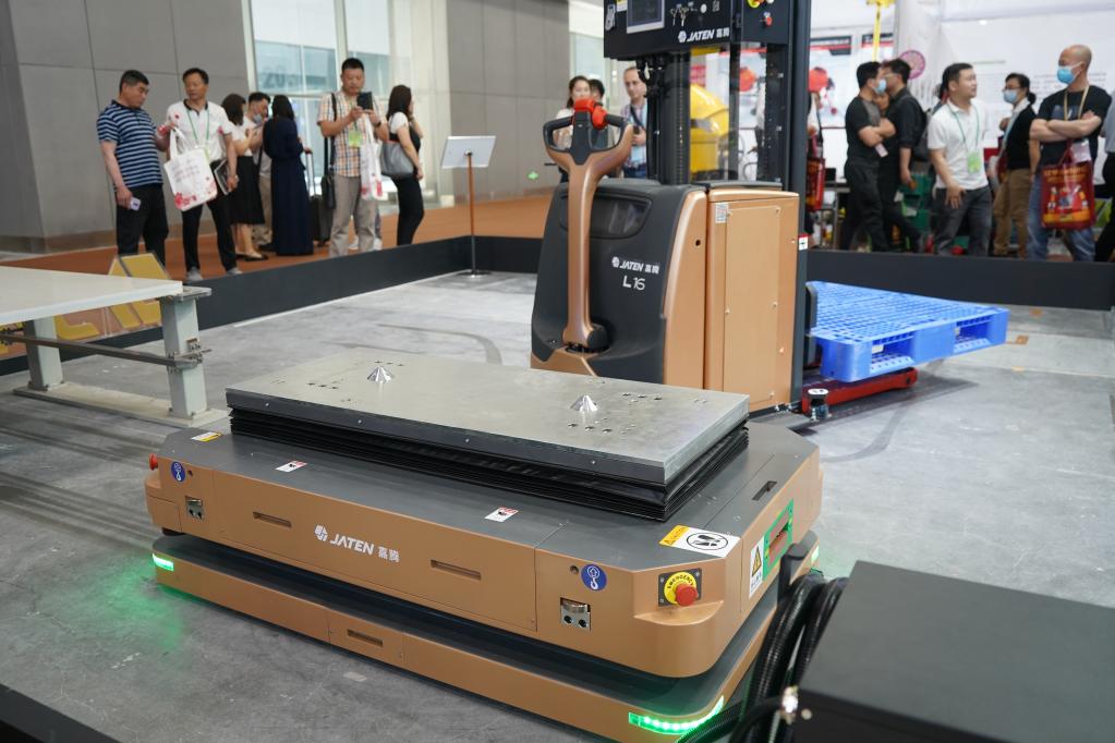 工業(yè)自動(dòng)化和智能制造展館內,一臺無(wú)人駕駛叉車(chē)正在展位狹小的空地上靈活運行、精準“搬運”,引來(lái)不少人駐足圍觀(guān)。