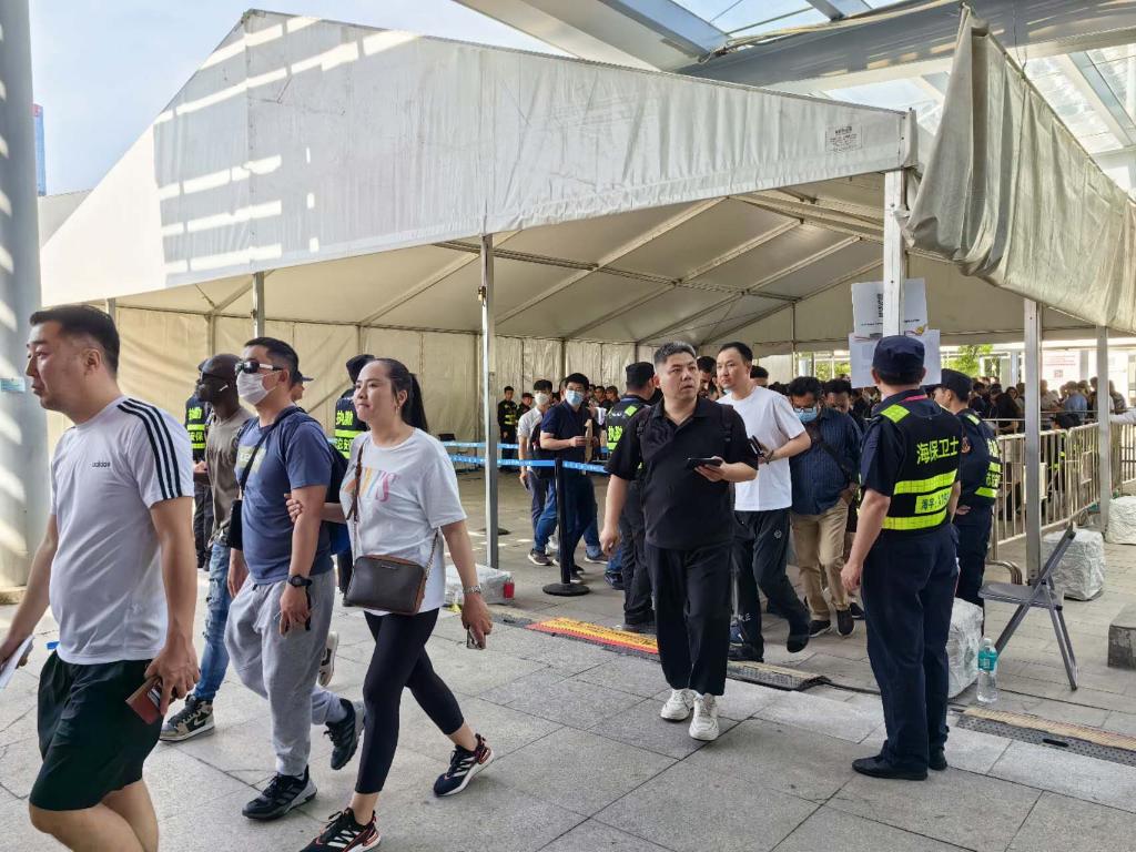 這是時(shí)隔三年后,廣交會(huì )首次全面恢復線(xiàn)下舉辦。入口處排著(zhù)長(cháng)隊的人群,如潮水般緩緩向前涌動(dòng)。