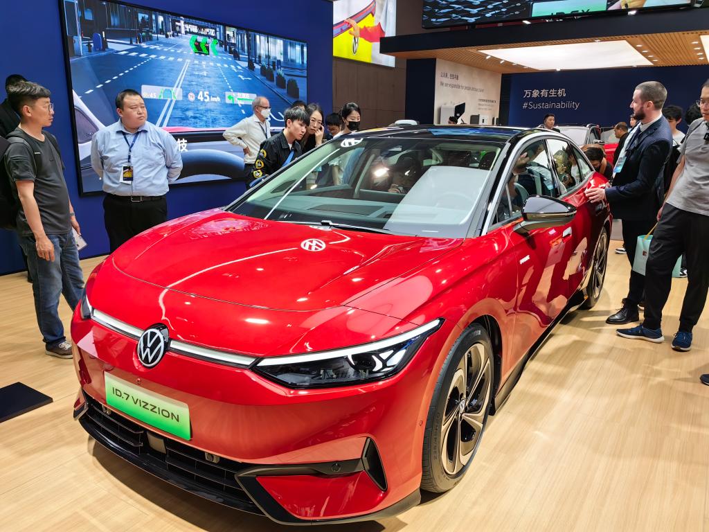 剛剛全球首發(fā)的大眾ID.7純電轎車(chē)亮相上海車(chē)展。新華社記者周蕊 攝
