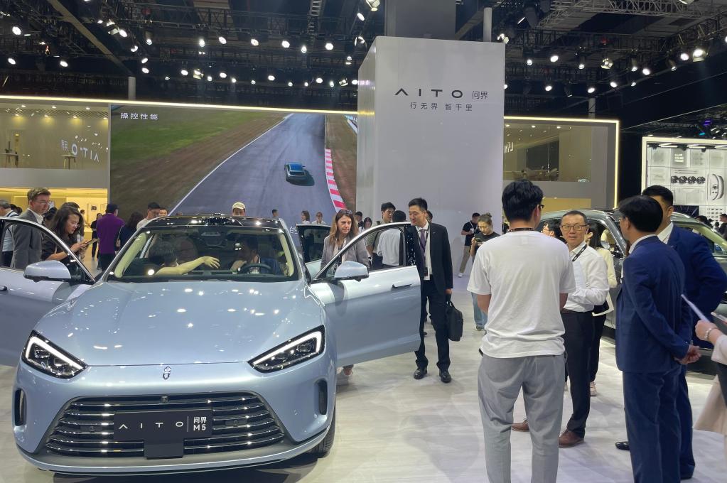 AITO問(wèn)界M5在展臺上吸引了很多觀(guān)展者的目光。新華社記者王辰陽(yáng) 攝