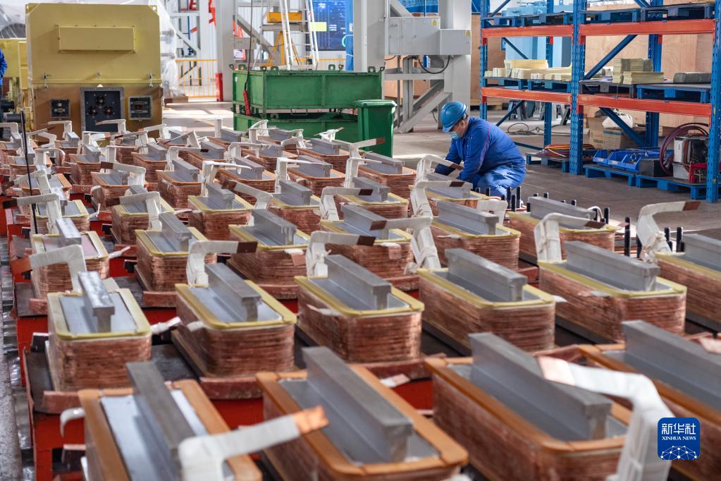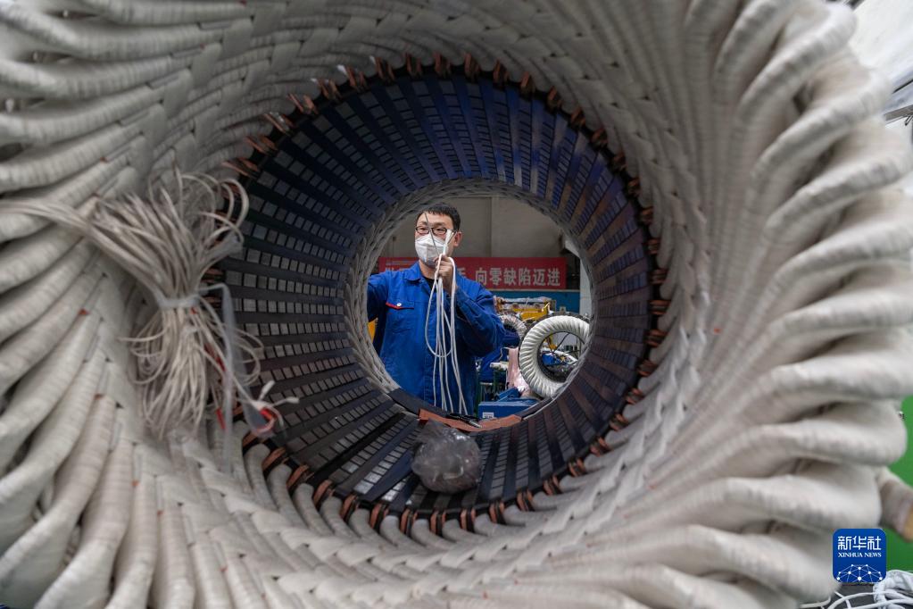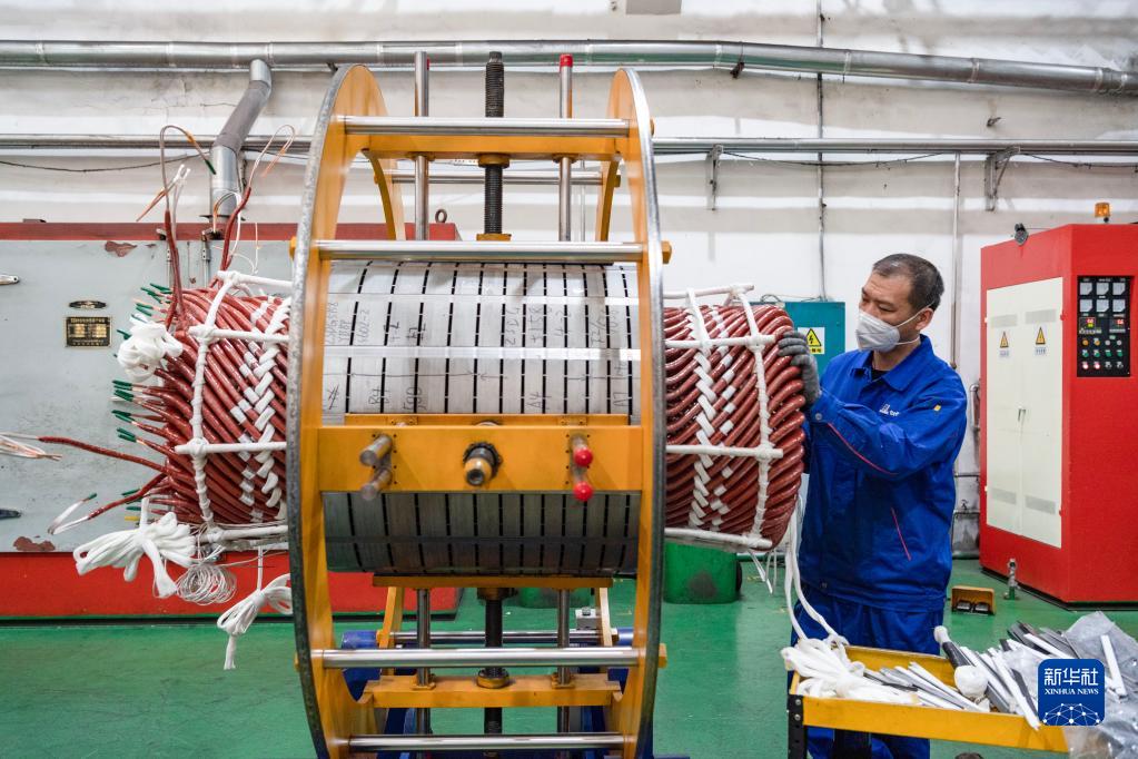 工人在哈爾濱電氣集團佳木斯電機股份有限公司生產(chǎn)車(chē)間內作業(yè)(4月4日攝)。新華社記者 謝劍飛 攝