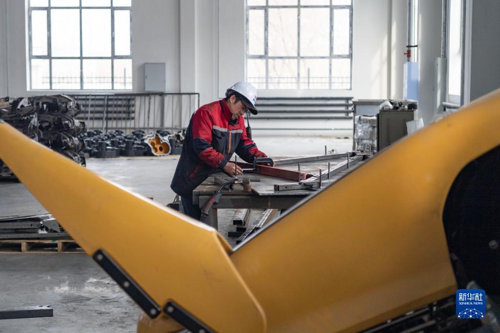 在黑龍江省佳木斯市湯原縣振華機械制造有限公司生產(chǎn)車(chē)間,工人在生產(chǎn)作業(yè)(4月6日攝)。新華社記者 謝劍飛 攝