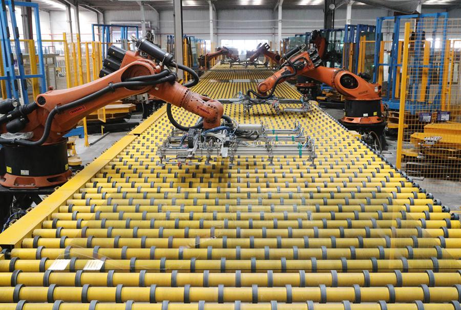 秦皇島海港經(jīng)濟開(kāi)發(fā)區一家玻璃企業(yè)的機器手在工作中(2023年2月17日攝)。新華社記者 楊世堯 攝