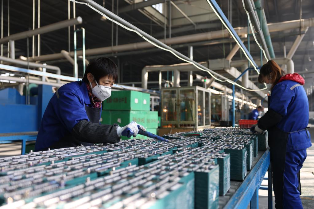 在河北超威電源有限公司,工人們正在檢測產(chǎn)品。新華社記者張瑋華 攝