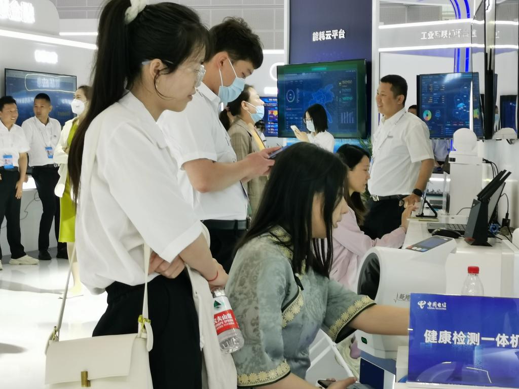圖為觀(guān)眾正在試用健康檢測一體機。新華社記者劉惟真 攝