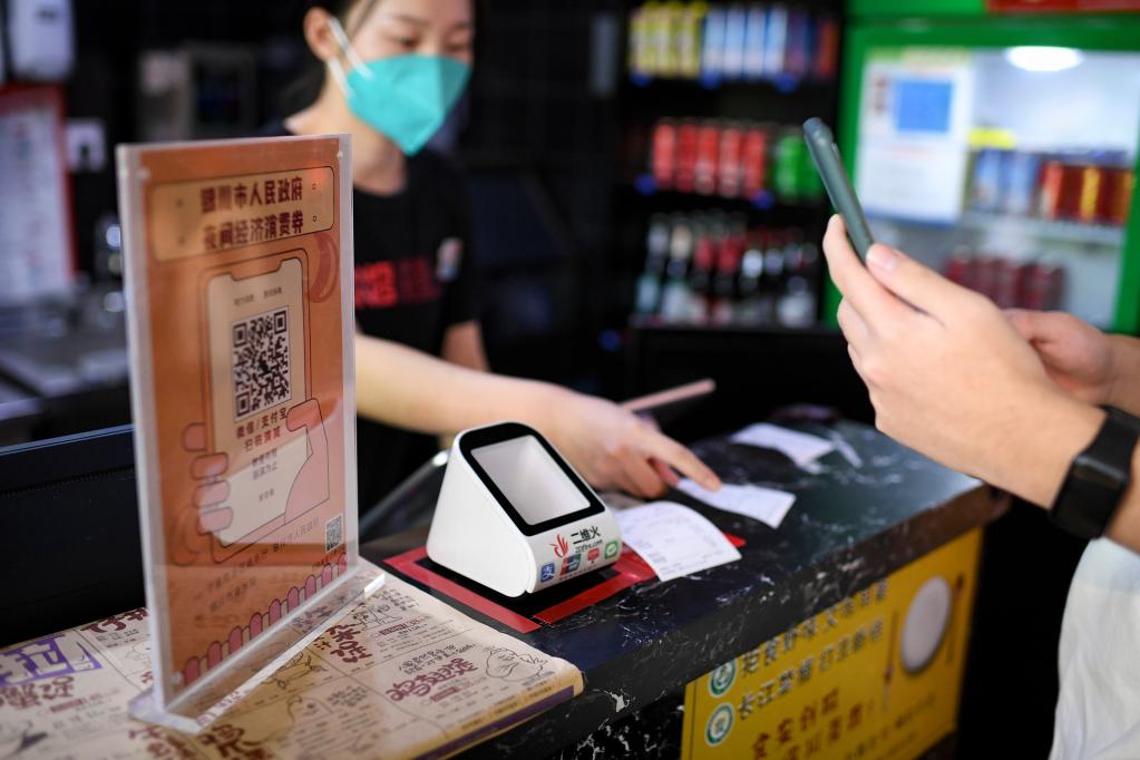 2022年11月11日,市民在寧夏銀川市一家餐館用餐后,使用數字消費券進(jìn)行支付。新華社記者馮開(kāi)華 攝