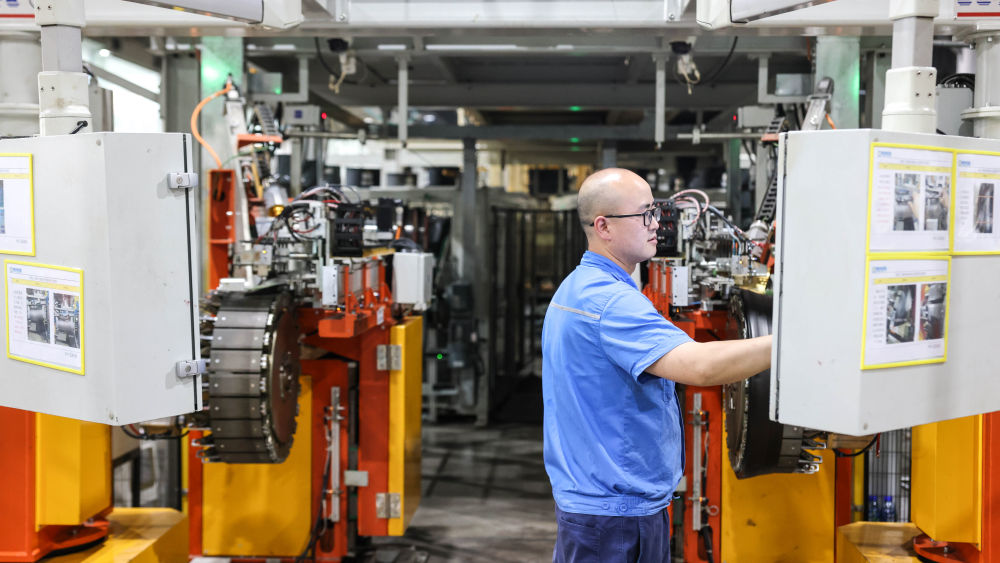工作人員在貴州輪胎股份有限公司的“5G全連接工廠(chǎng)”成型區作業(yè)(2022年5月17日攝)。新華社記者 歐東衢 攝