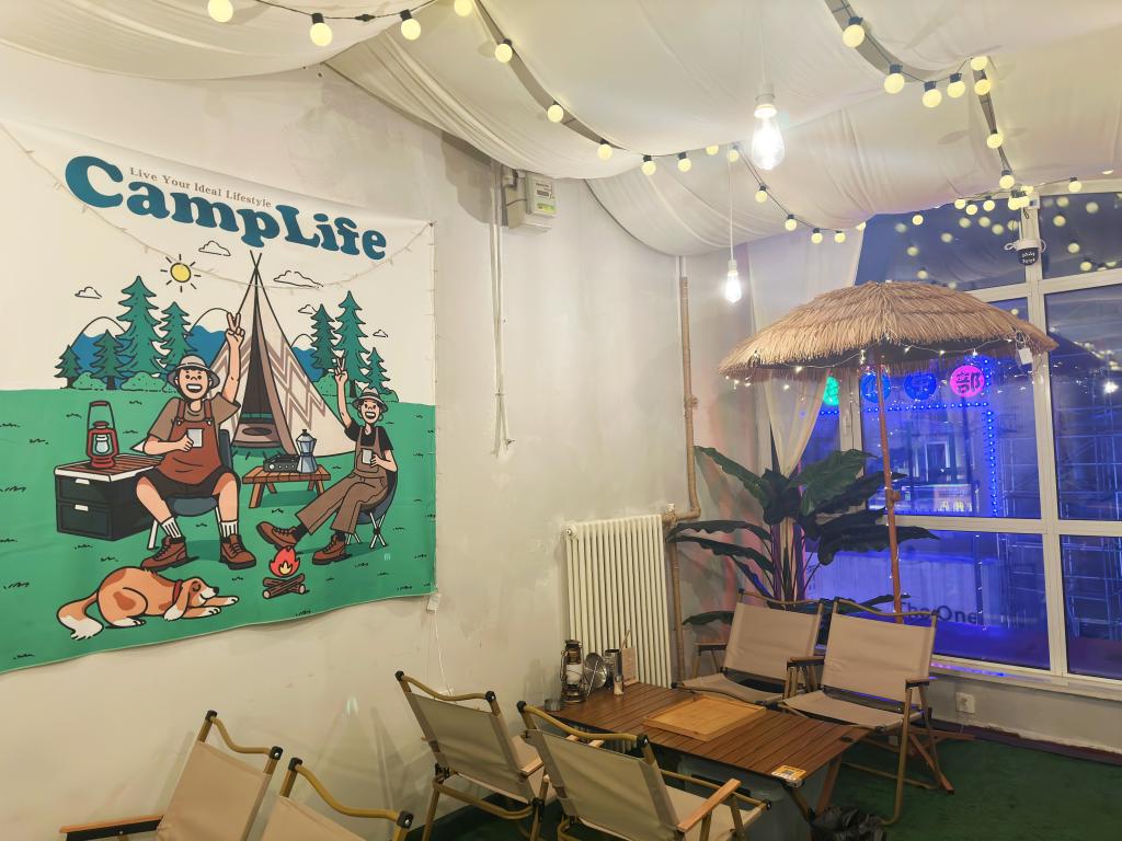 哈爾濱市的一家露營(yíng)風(fēng)格的燒烤店一隅。新華社記者朱悅 攝