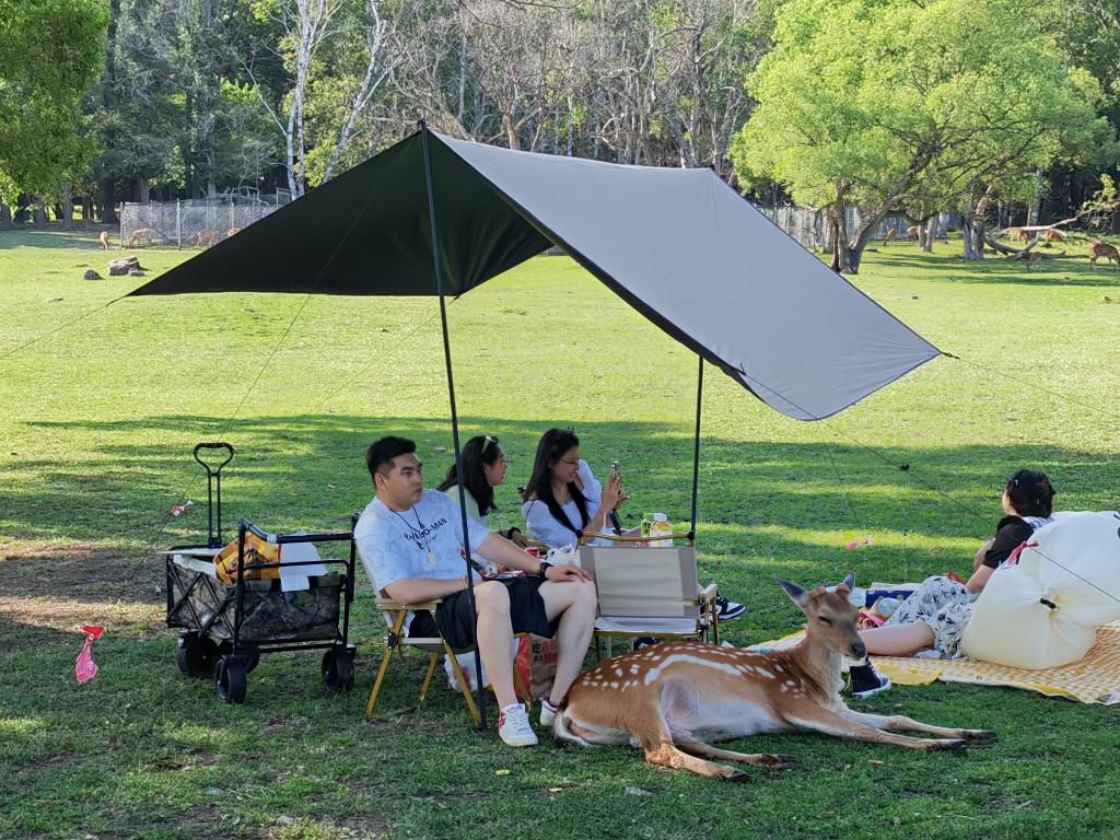 在位于黑龍江省哈爾濱市的平山皇家鹿苑旅游區,藍天白云,清風(fēng)徐徐,小鹿悠閑地趴在正在露營(yíng)的游客腳下,有的游客在品味美食、欣賞美景,有的游客投喂羊駝、撫摸梅花鹿,“露營(yíng)+親近動(dòng)物”讓人與動(dòng)物和諧相處。