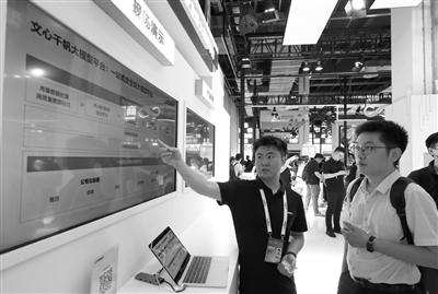 在上海舉行的2023世界人工智能大會(huì )上,工作人員向參觀(guān)者介紹百度文心千帆大模型平臺。 新華社記者 方喆 攝