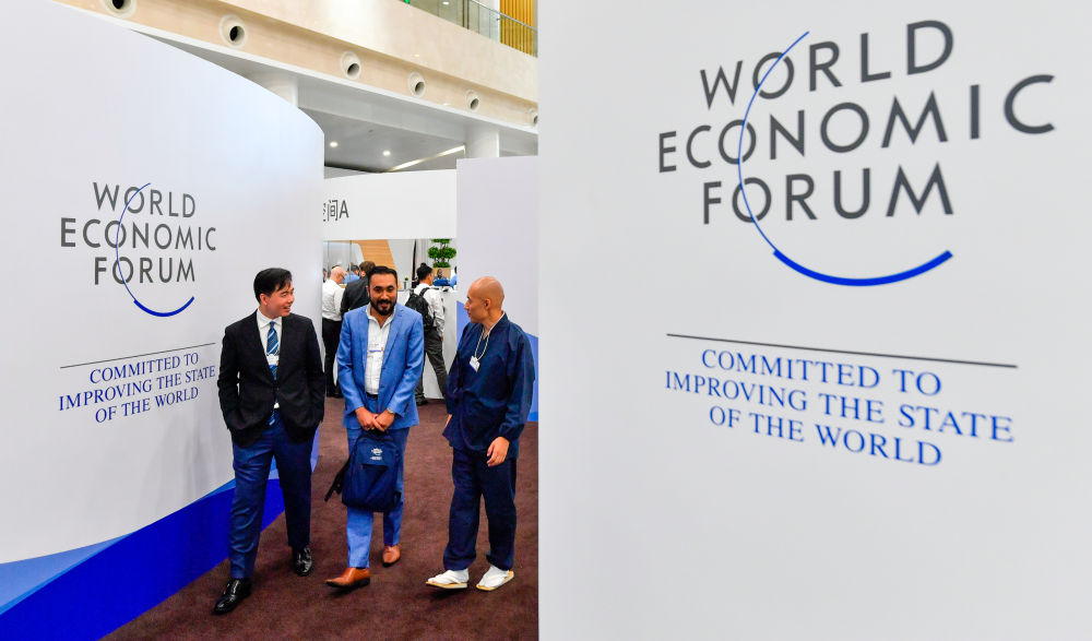 第十四屆夏季達沃斯論壇與會(huì )者在論壇設置的新領(lǐng)軍者村內交流(6月27日攝)。新華社記者 孫凡越 攝