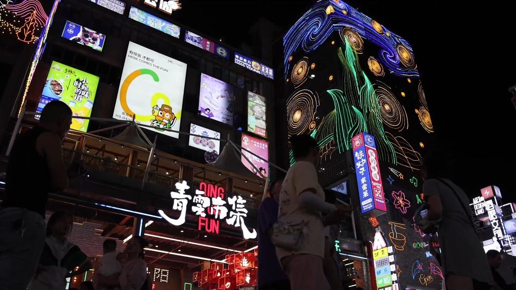 餐飲、娛樂(lè )、文創(chuàng )三種業(yè)態(tài)交織融合,7月以來(lái),每天約有3萬(wàn)人次在這里感受燈光璀璨的都市夜晚,體驗貴陽(yáng)本地夜生活。