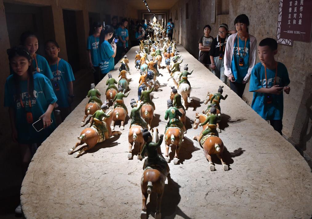 參加研學(xué)活動(dòng)的學(xué)生在河南省洛陽(yáng)市南石山村的唐三彩文化園內參觀(guān)。新華社記者 李嘉南 攝