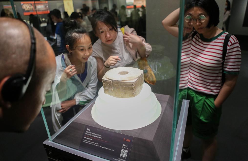 游客在上海博物館參觀(guān)“實(shí)證中國:崧澤·良渚文明考古特展”。新華社記者 辛夢(mèng)晨 攝