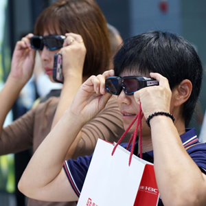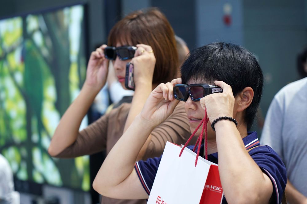 9月6日,參觀(guān)者在2023中國國際數字經(jīng)濟博覽會(huì )上體驗主動(dòng)式3D眼鏡。新華社記者 駱學(xué)峰 攝