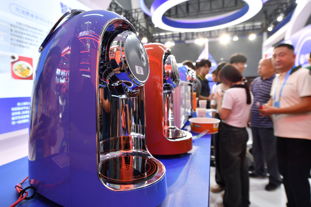 9月7日,參觀(guān)者在2023中國國際數字經(jīng)濟博覽會(huì )上參觀(guān)體驗智能餐廚機。新華社記者 駱學(xué)峰 攝