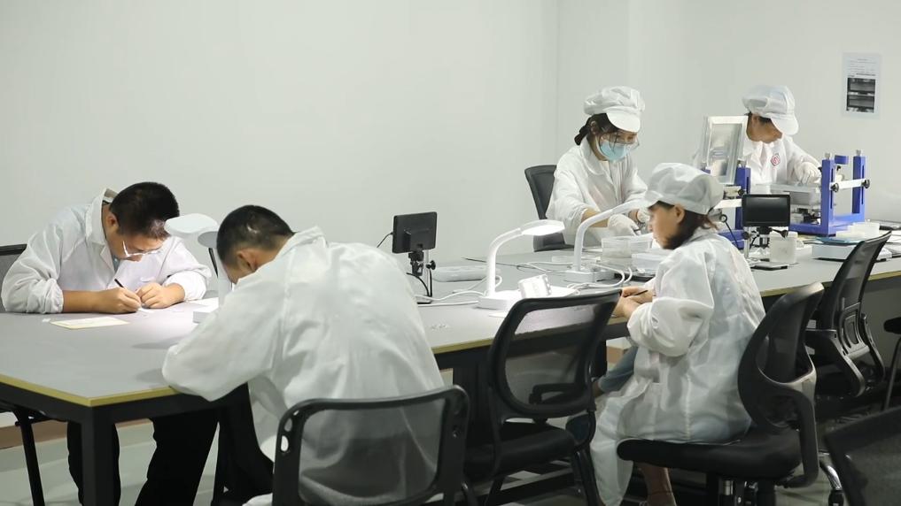 走進(jìn)西安秦創(chuàng )原灃東先進(jìn)制造產(chǎn)業(yè)園,礪芯慧感科技有限公司的工人們正在進(jìn)行芯片分揀工作。
