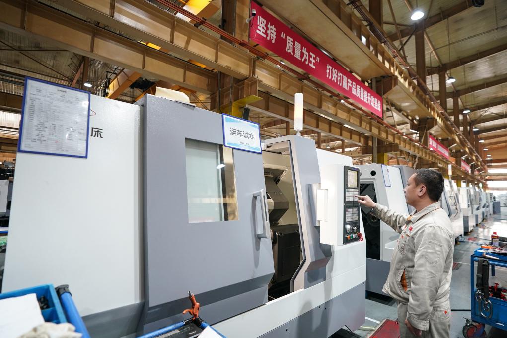 通用技術(shù)集團沈陽(yáng)機床的工人在車(chē)間工作。新華社記者潘昱龍 攝