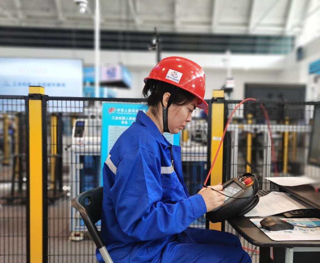 9月16日,選手參加工業(yè)機器人系統操作賽項比賽。(新華社記者 劉惟真 攝)