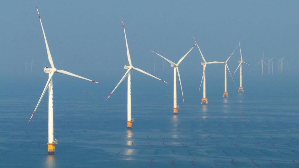 距離大連莊河市海岸線(xiàn)20多公里的黃海海域,300多座高約百米的“大風(fēng)車(chē)”聳立在藍天碧海間,巨大的風(fēng)電機組葉片不停轉動(dòng)。莊河市發(fā)展和改革局副局長(cháng)吳靜說(shuō):“目前,莊河已有4個(gè)海上風(fēng)電項目并網(wǎng)運行,年發(fā)電量可達27.3億度?!?/p>