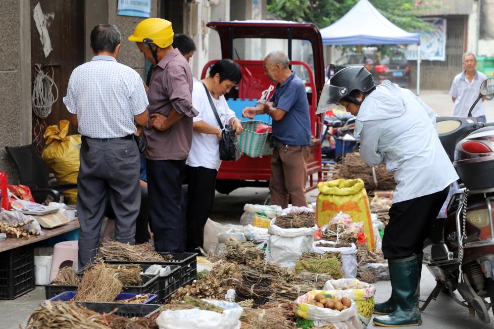 趕集人在松陽(yáng)縣古市鎮鎮集挑選中草藥材。新華社記者張曉潔 攝