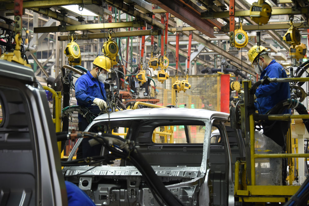 工人在山東自貿試驗區青島片區一汽車(chē)制造企業(yè)車(chē)間內生產(chǎn)汽車(chē)(2023年2月23日攝)。新華社記者 李紫恒 攝