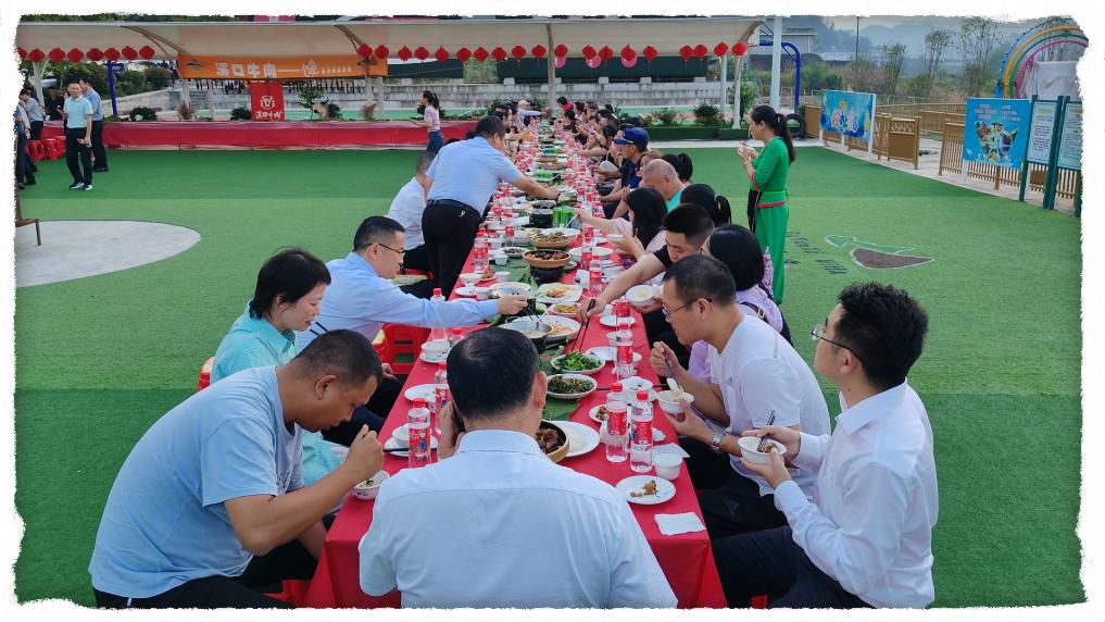 圖為在湖南省慈利縣溪口鎮樟樹(shù)村舉辦的“全牛宴”。(朱淵 攝)