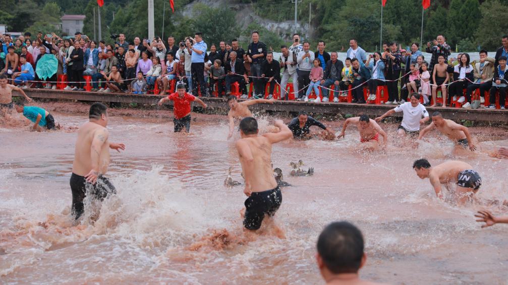 圖為在湖南省桑植縣舉辦的農耕趣味運動(dòng)會(huì )現場(chǎng)。桑植縣委宣傳部供圖