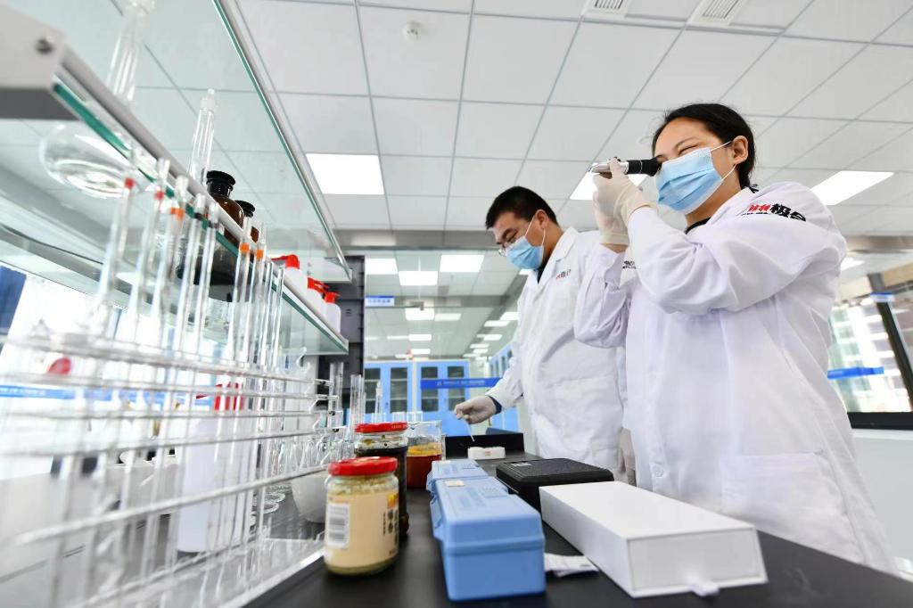 麻辣食品工業(yè)數字化研究院中,工作人員正在進(jìn)行新產(chǎn)品配制試驗。(楊圣龍 攝)