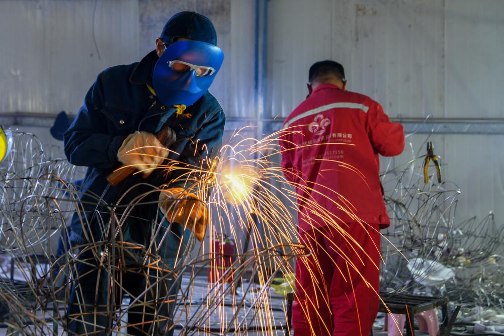焊工在自貢市大安區某彩燈制作廠(chǎng)趕制彩燈。新華社記者唐文豪 攝