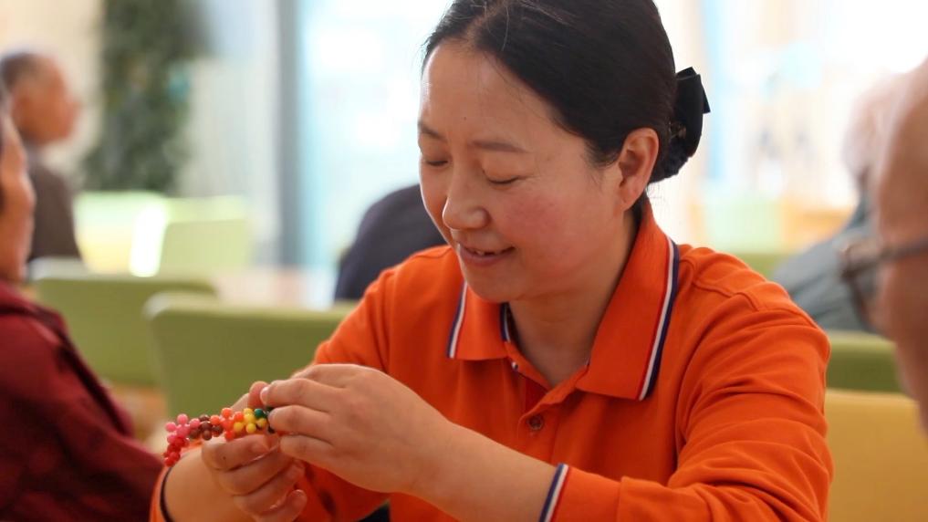 余成萍是青海省西寧市石頭磊養老服務(wù)中心的一名介護師,她的主要工作是照顧老人生活,包括一日三餐、日常起居、心理輔導等。