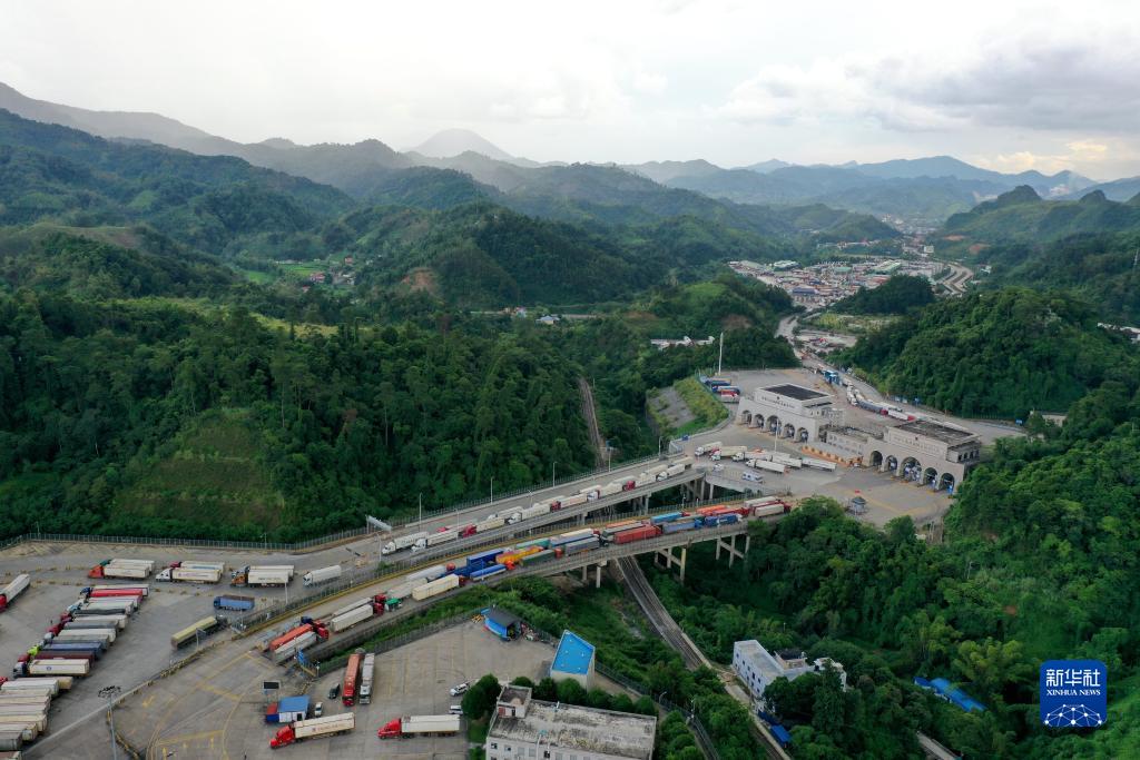 這是繁忙的廣西憑祥友誼關(guān)口岸(2023年9月9日攝,無(wú)人機照片)。新華社記者 曹祎銘 攝