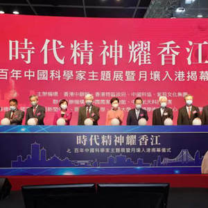 26日,在香港灣仔會(huì )展中心,嘉賓共同揭開(kāi)“時(shí)代精神耀香江”之百年中國科學(xué)家主題展暨月壤入港儀式大幕。新華社記者 王申 攝