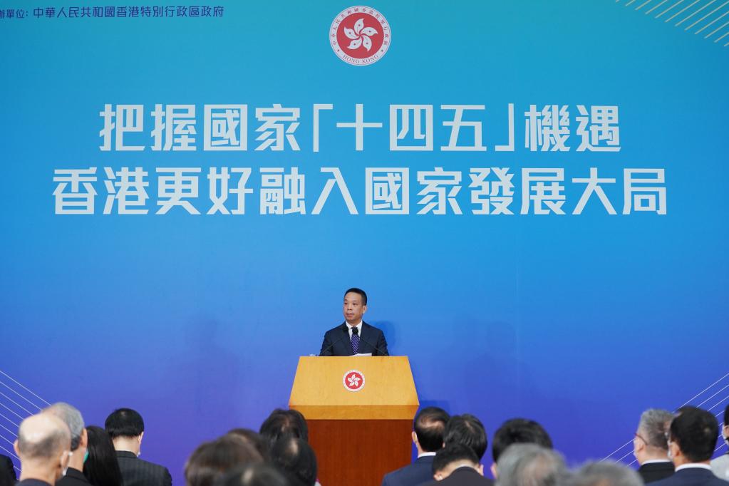 大家上午好。今年5月,林鄭月娥行政長(cháng)官給全國政協(xié)副主席、國務(wù)院港澳辦主任夏寶龍寫(xiě)信,請求中央派人赴香港給特區政府、社會(huì )各界講解國家“十四五”規劃。中央高度重視行政長(cháng)官的這一請求,委派我和國家發(fā)改委、科技部、人民銀行、國務(wù)院新聞辦的同事來(lái)香港,和各界朋友交流學(xué)習國家“十四五”規劃的心得體會(huì ),一同探討香港如何參與和對接國家戰略、如何在融入國家發(fā)展大局過(guò)程中實(shí)現更好發(fā)展。在此,請允許我代表本次宣講團對行政長(cháng)官和特區政府的邀請表示感謝!并轉達夏寶龍主任對香港各界朋友們的問(wèn)候!