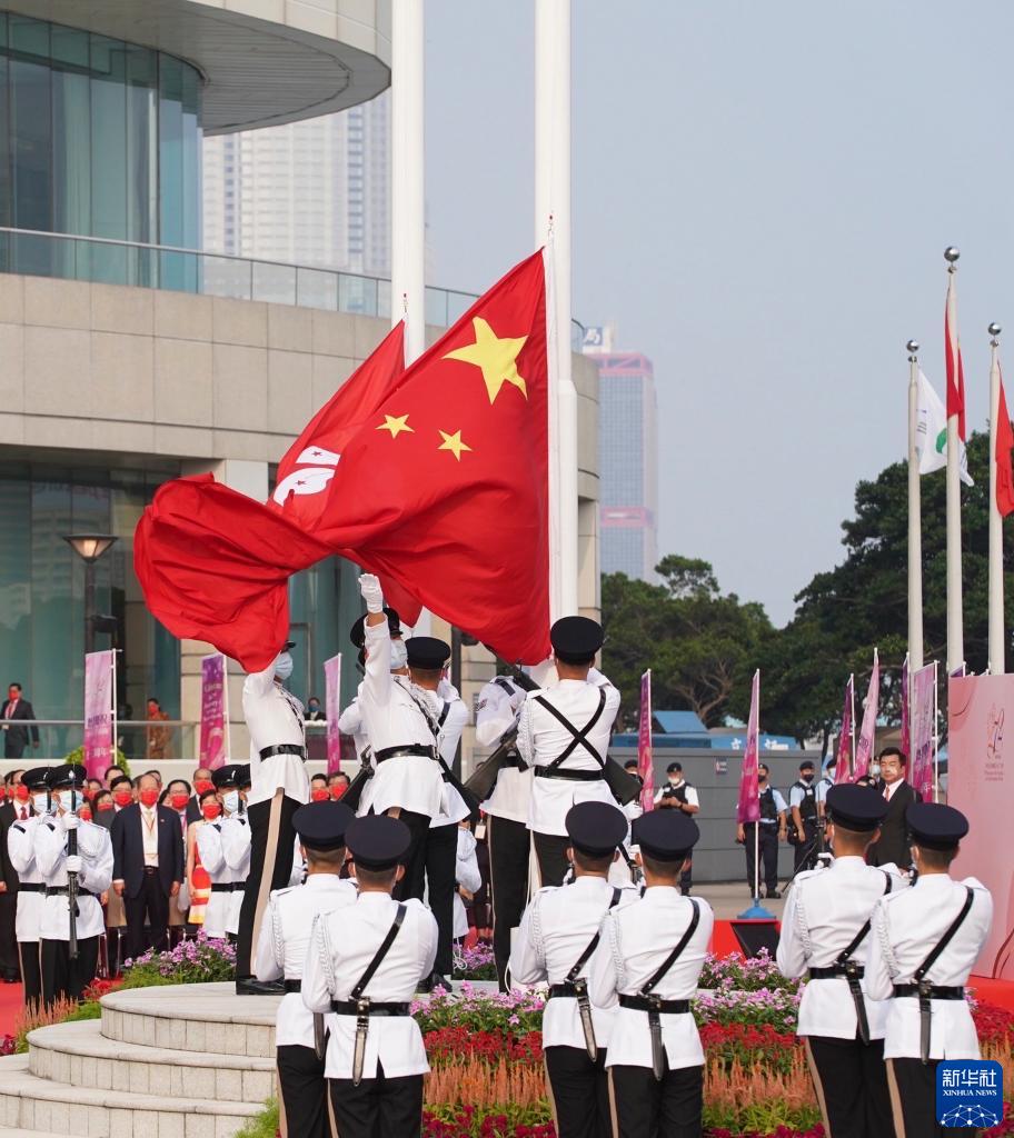 10月1日,香港特區政府在金紫荊廣場(chǎng)舉行升旗儀式。新華社記者 呂小煒 攝