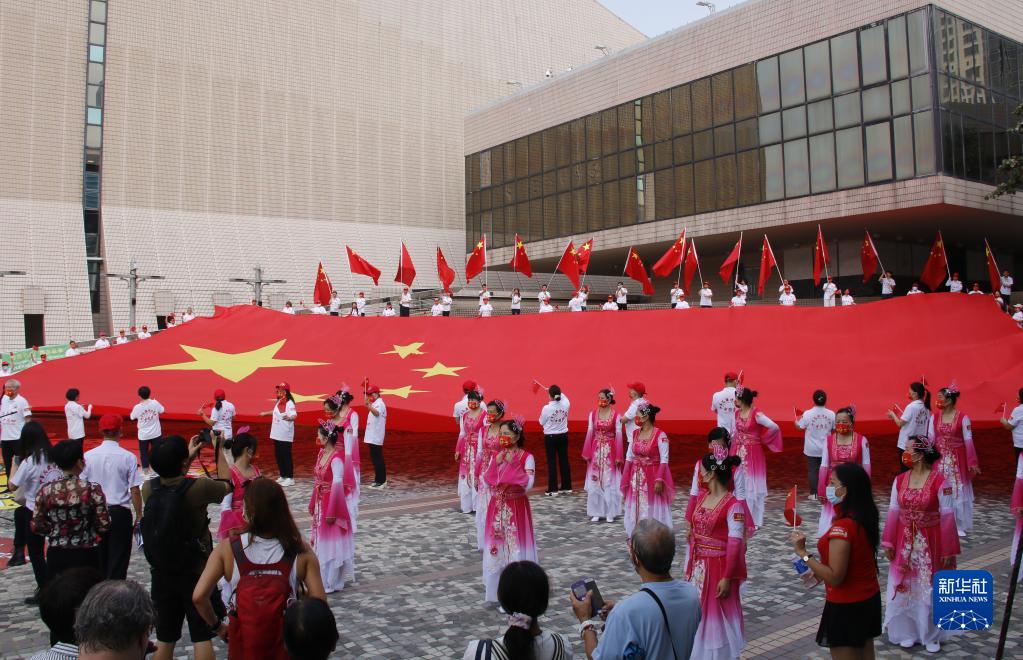 “今天是中華人民共和國成立72周年的喜慶日子,我們作為愛(ài)國愛(ài)港的香港市民社團,專(zhuān)門(mén)購置了這面巨幅國旗,為祖國獻禮?!薄跋憬椤ぶ袊摹鄙鐖F會(huì )長(cháng)李文烈說(shuō),此次慶?;顒?dòng)由數十位市民自發(fā)參與,有的擔任護旗手,有的擔任舞蹈演員,還有的擔任合唱隊員。