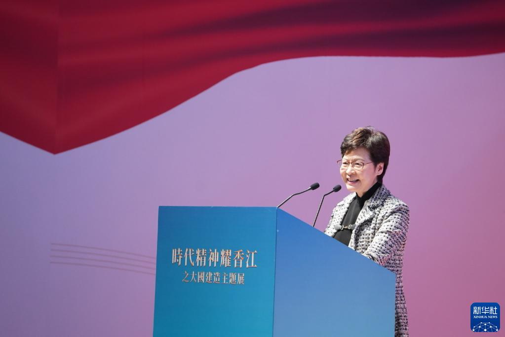 10月25日,香港特區行政長(cháng)官林鄭月娥在展覽開(kāi)幕式上致辭。新華社記者 呂小煒 攝