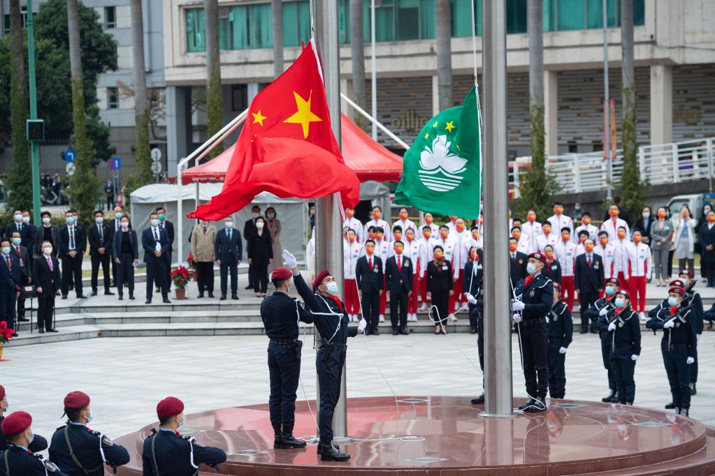 12月20日,澳門(mén)特區政府在金蓮花廣場(chǎng)舉行升旗儀式,慶祝澳門(mén)回歸祖國22周年。新華社記者 張金加 攝