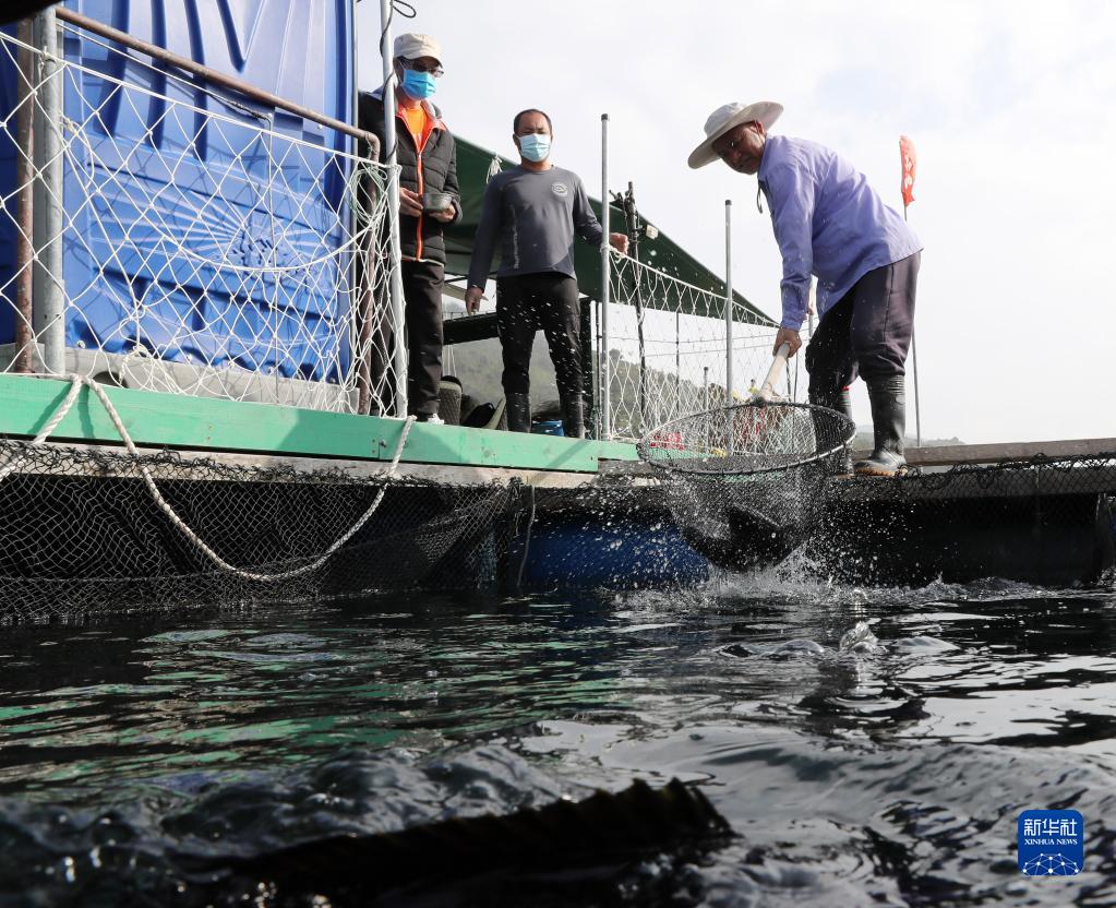 網(wǎng)箱中養殖的魚(yú)(1月27日攝)。新華社記者 李鋼 攝