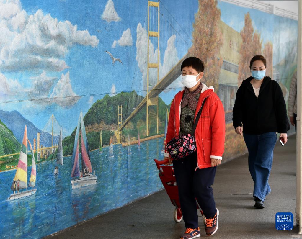 2月28日,在香港荃灣,市民佩戴口罩出行。新華社記者 盧炳輝 攝