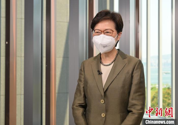 4月27日,香港特區行政長(cháng)官林鄭月娥在“香港智營(yíng)設計·閃躍大灣區2022”啟動(dòng)儀式通過(guò)視像致辭?!∠愀厶貐^政府新聞處供圖