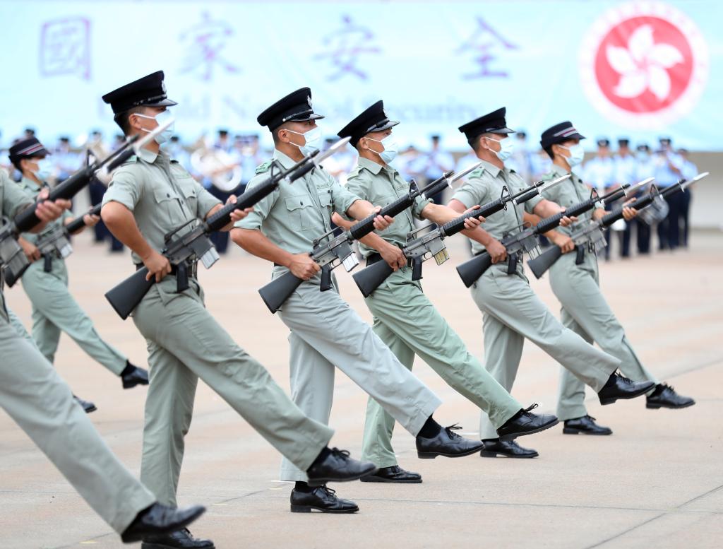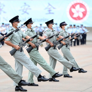 艷陽(yáng)晴空的一天,記者來(lái)到香港警察學(xué)院。擔任升旗手的警員們操練著(zhù)中式步操,正在為即將到來(lái)的香港回歸祖國25周年紀念日升旗儀式進(jìn)行演練。25年來(lái),每個(gè)7月1日的升旗都由香港警隊負責。